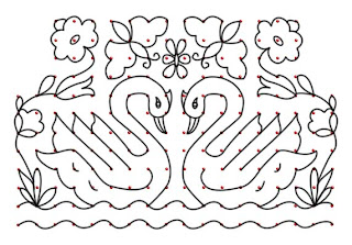 This is a traditional Rangoli design based on dots. First make the dots with a chalk on the floor and use them to guide you to draw the curlicues and patterns. Fill the lines with colored powders or ground rice paste to get a good Rangoli.